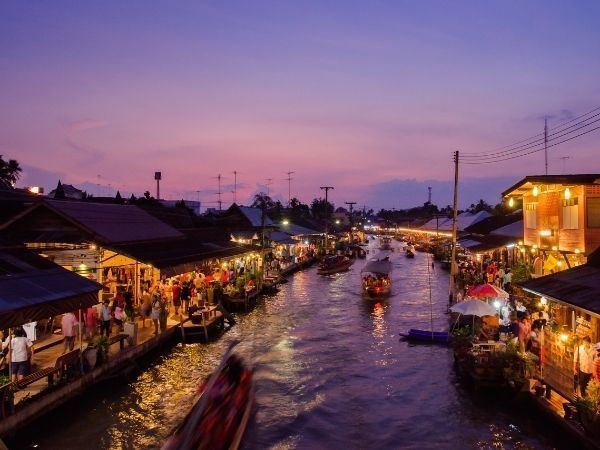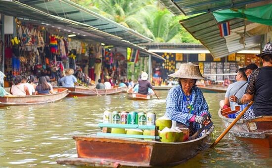 Bu turumuzda Bangkok’un dışına çıkarak yol üzerinde ilk önce dünyaca tanınmış Siam İkizlerinin doğduğu Samut Songkram kasabasında bir Hindistan cevizi çiftliğine uğruyoruz. Burada Hindistan cevizi ağacından Tay halkının nelerde faydalandıkları hakkında bilgi alıp, bu ağaçtan yapılmış hediyelik eşyaları görüyoruz. Ayrıca içerdeki orkide bahçesini de gezebilirsiniz. Buradan hareket edip 10 dk. civarında otobüs yolculuğundan sonra Tay stili teknelerin kalktığı iskeleye geliyoruz. Buradan teknelere binip nefis egzotik Uzakdoğu manzaraları eşliğinde yaklaşık yarım saatlik zevkli bir yolculuktan sonra dergilere kapak, belgesellere jenerik olmuş meşhur Yüzen Çarşı’ya geliyoruz, nehir üzerindeki kanoların içinde kurulan açık pazarı görecek ve alışveriş yapma imkanına sahip olacaksınız. Bangkok’a dönüş yolunda rehberinizin alacağı Tayland’ın en meşhur tropik meyvelerinin tadına bakacaksınız.
